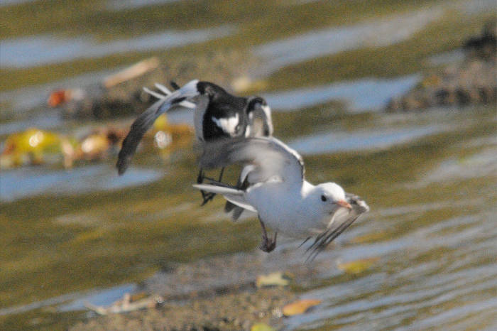 野鳥撮影時にセグロセキレイのそばで白い野鳥を