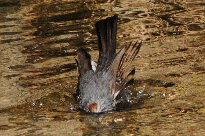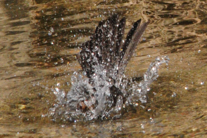 矢田川でヒヨドリがカワセミのように水の中へ